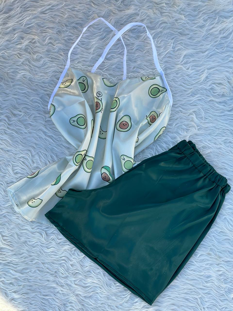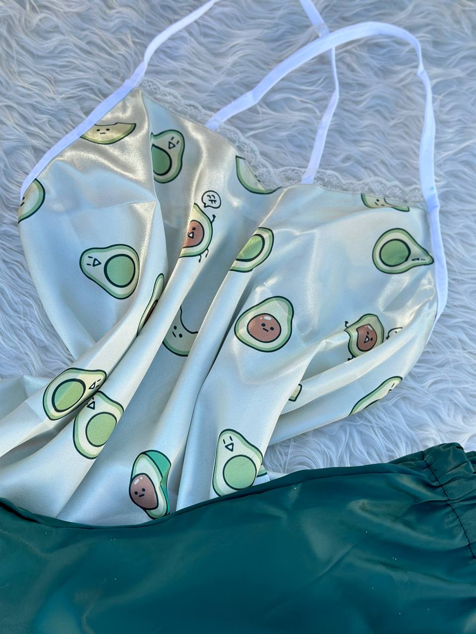 ست تاپ و شلوارک ساتن زنانه مدل آووکادو خندون