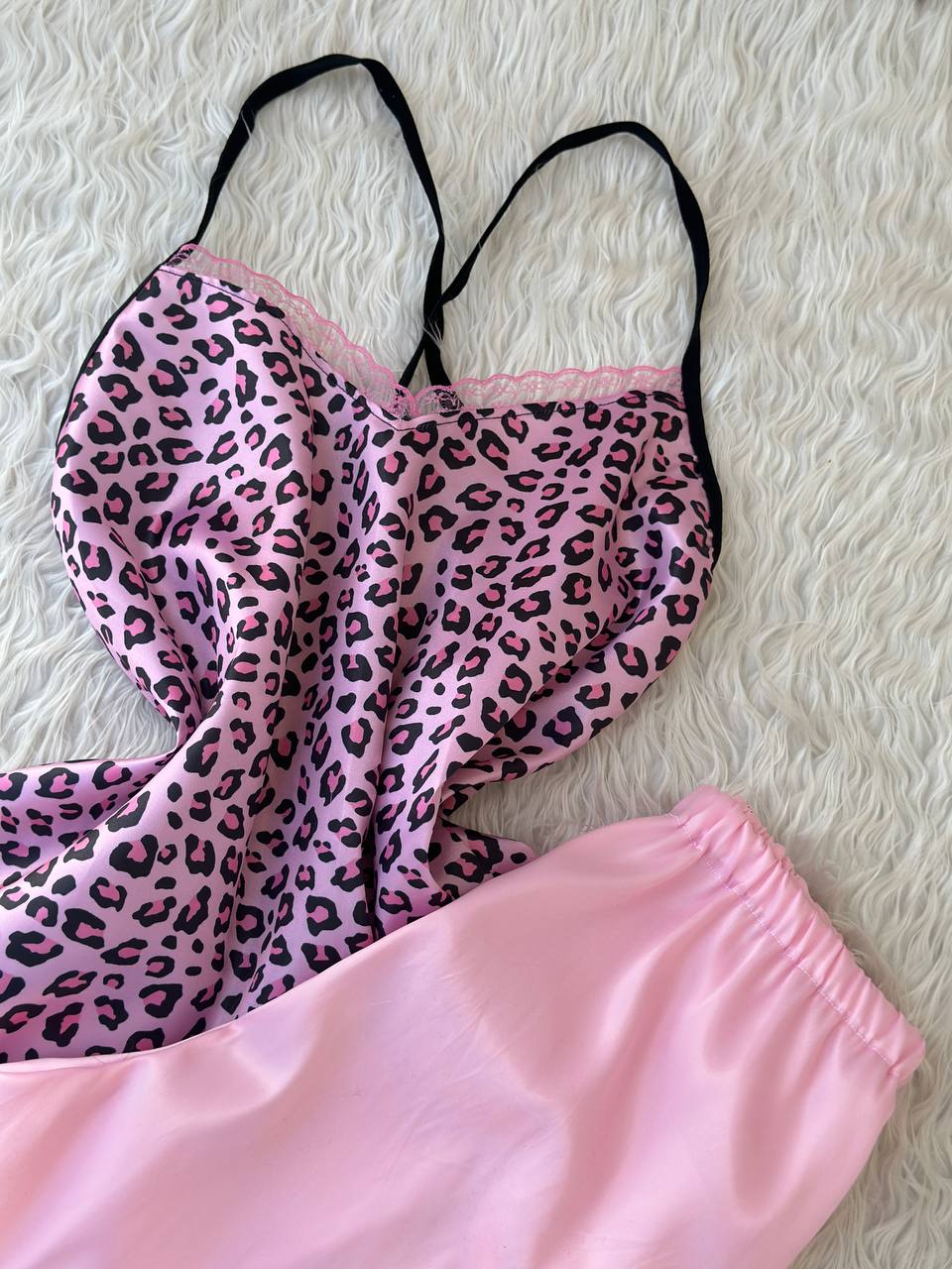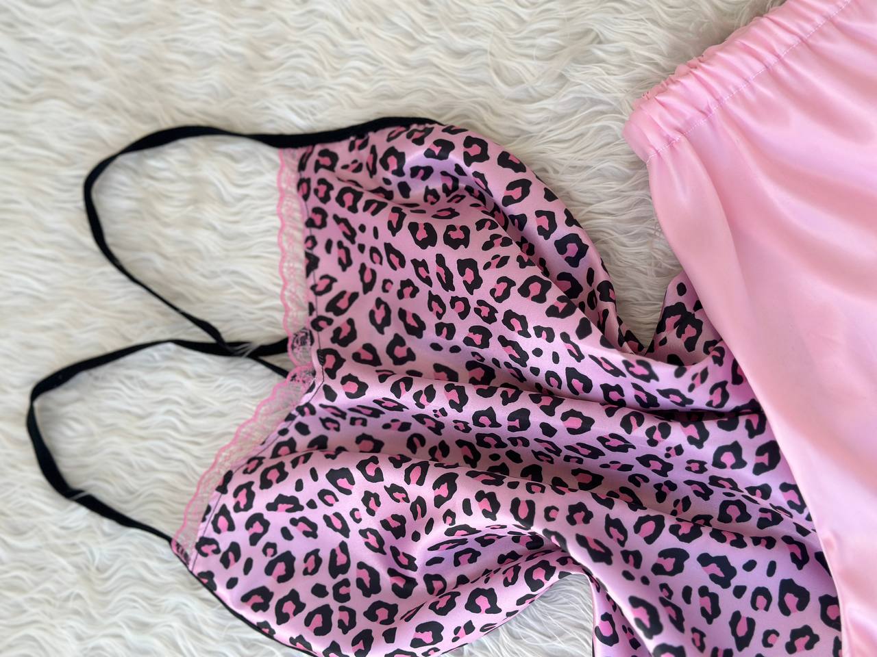 اگر به دنبال یک لباس راحتی زنانه شیک و لطیف یا یک لباس خواب زنانه ساتن هستید، ست تاپ و شلوارک ساتن زنانه مدل پلنگ صورتی انتخابی اقتصادی، باکیفیت و بسیار نرم است. این ست از پارچهی ساتن لطیف تهیه شده که همزمان حس زیبایی و راحتی را برای شما فراهم میکند. طراحی خاص قسمت پشت تاپ به صورت کشدار باعث میشود لباس کاملاً با فرم بدن شما هماهنگ شود. علاوه بر آن، هر دو قسمت (تاپ و شلوارک) دارای کشسانی بالا هستند و بهراحتی با سایزهای مختلف خود را تطبیق میدهند. این محصول فریسایز بوده و برای سایزهای ۳۶ تا ۴۲ مناسب است.