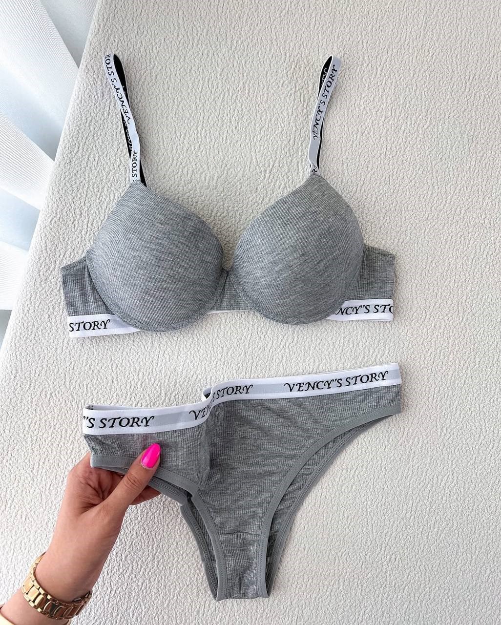 ست شورت و سوتین اسفنجی اروپایی مدل VENCY'S STORY طوسی