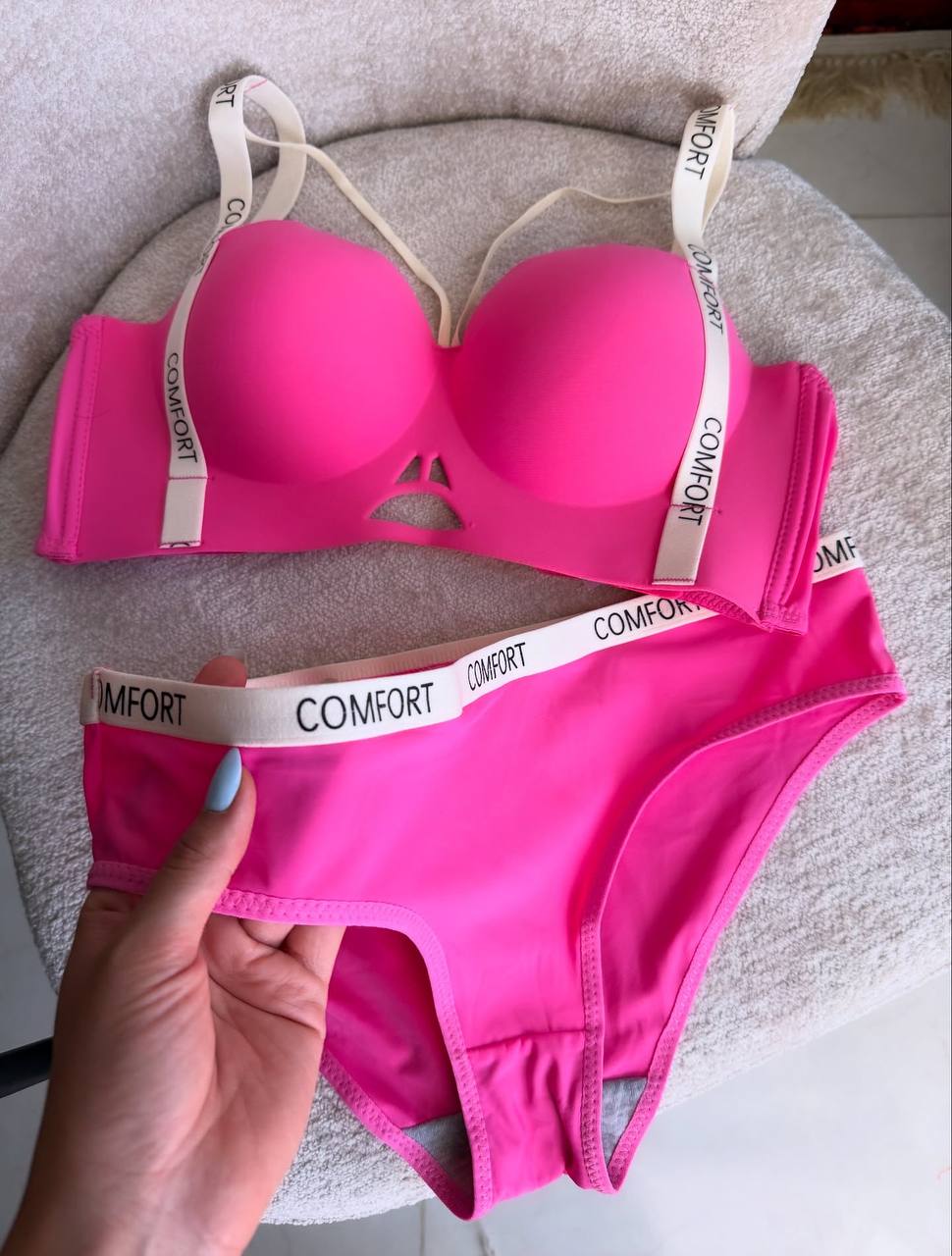 ست شورت و سوتین NEW COMFORT از کیفیت بالای پارچه و دوخت برخوردار است و در دسته محصولات وارداتی اروپایی قرار میگیرد. بهدلیل طراحی اسفنجی و قالببندی خاص سوتین، پیشنهاد میشود یک سایز بزرگتر از سایز معمول خود انتخاب کنید تا بهترین فیت و راحتی را تجربه نمایید. این ست گزینهای مناسب برای افرادی است که بهدنبال لباس زیر سبک، ساده، با کیفیت و مناسب استفاده روزانه هستند