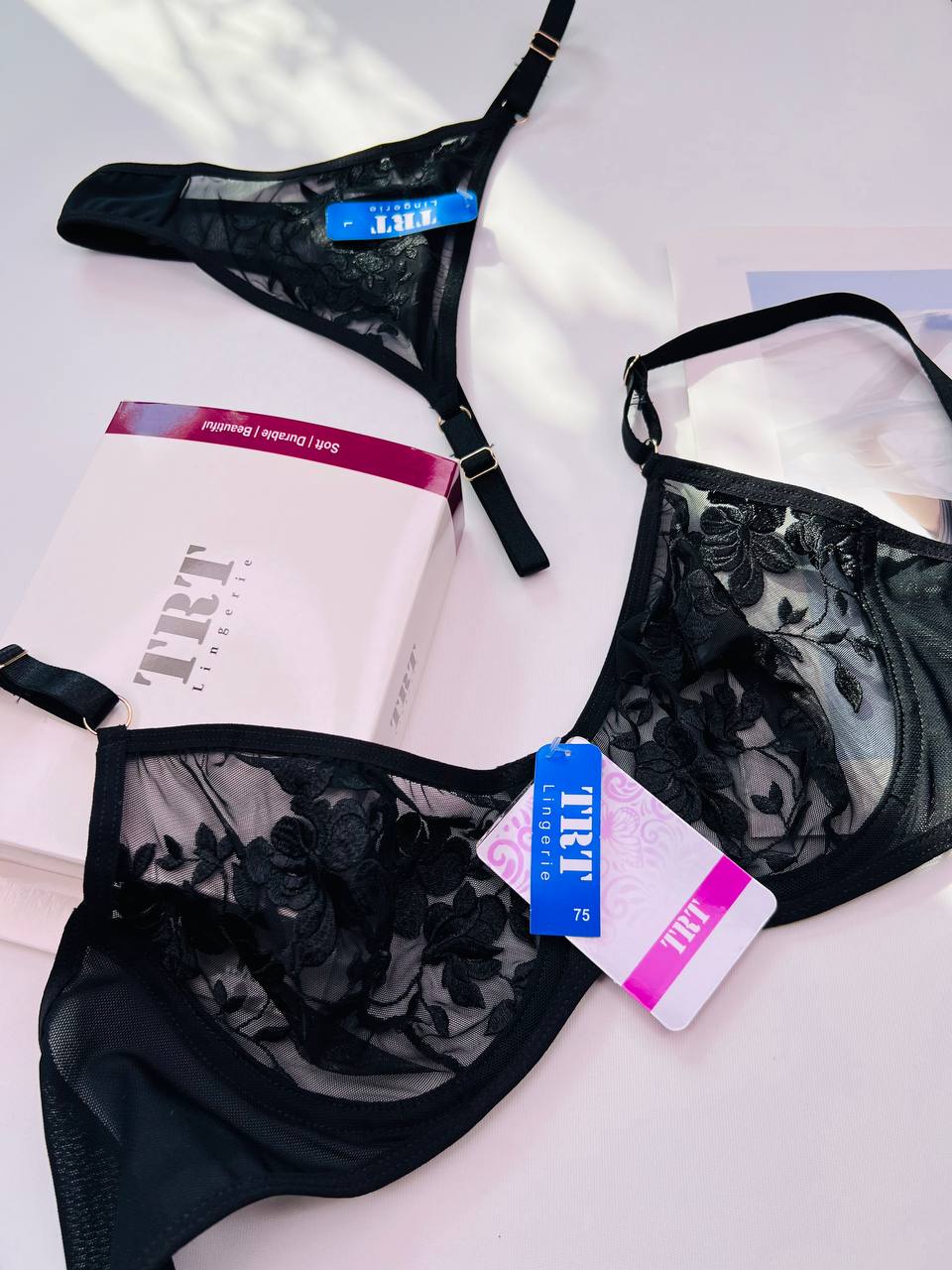 ست شورت و سوتین تورگاز برند TRT مدل گل شب بو مشکی