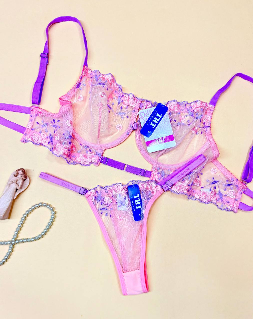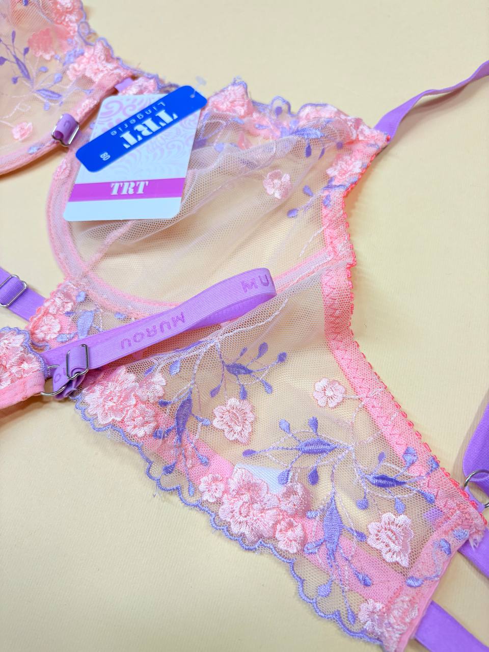 ست شورت و سوتین تورگاز تی ار تی مدل ساکورا با طراحی بسیار خاص و رنگبندی جذاب، انتخابی متفاوت برای بانوان خوشسلیقه است. این مدل در رنگهای زیبای صورتی-بنفش تولید شده و با گلدوزیهای ظریف روی پارچه تورگاز، جلوهای ظریف و زنانه دارد. ترکیب بندهای رنگی و دوخت حرفهای باعث شده این ست علاوه بر زیبایی، کیفیت بسیار خوبی داشته باشد و برای خانمهایی که به ظاهر لباس زیر خود اهمیت میدهند، یک انتخاب لوکس به حساب بیاید.