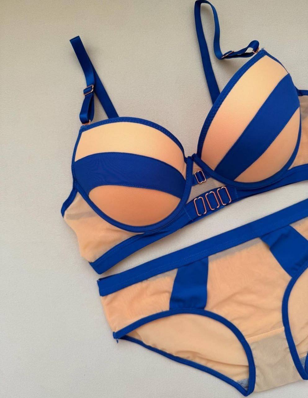 این ست شامل یک سوتین اسفنجی نیم جک با بندهای قابل تنظیم است که به شما کمک می‌کند سایز دقیق و فیت دلخواه خود را به دست آورید. به دلیل ساختار اسفنجی و نیم جک‌دار، توصیه می‌شود یک سایز بزرگتر از معمول انتخاب شود تا راحتی بیشتری داشته باشید. شورت این ست از مدل اسلیپ بوده و دارای لایه داخلی نرم و بهداشتی است که از حساسیت‌های پوستی جلوگیری کرده و استفاده طولانی‌مدت را لذت‌بخش می‌کند. پارچه باکیفیت و طراحی استاندارد، این محصول را به انتخابی مطمئن و بادوام تبدیل کرده است.