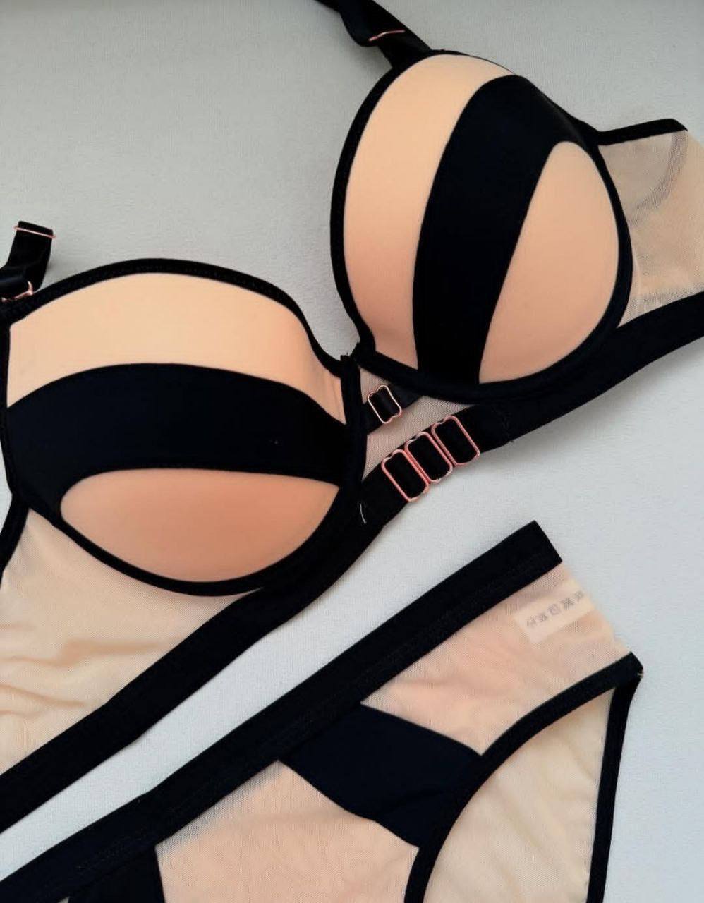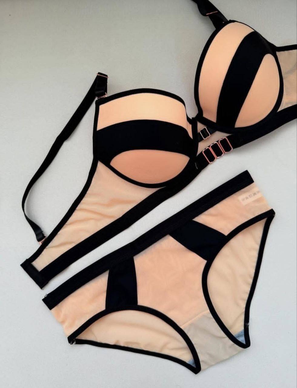 ست شورت و سوتین زنانه اسفنجی رنگ هلویی و مشکی