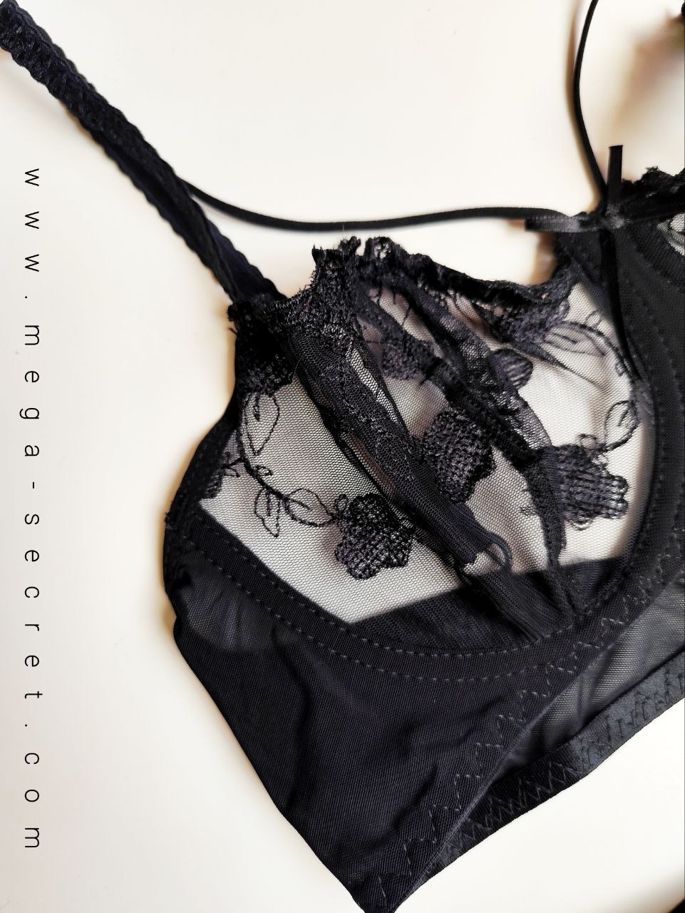 سوتین این مدل بدون اسفنج و جک بوده و از تور مشکی بدن‌نما دوخته شده است. اما چیزی که این مدل را متمایز می‌کند، طراحی خاص هارنس روی سینه است که ضمن حفظ فرم طبیعی، جلوه‌ای خاص، قدرتمند و اغواگر ایجاد می‌کند. هارنس‌ها به خوبی با فرم بدن هماهنگ شده و ظاهری خاص و جسورانه به این لباس زیر می‌دهند.