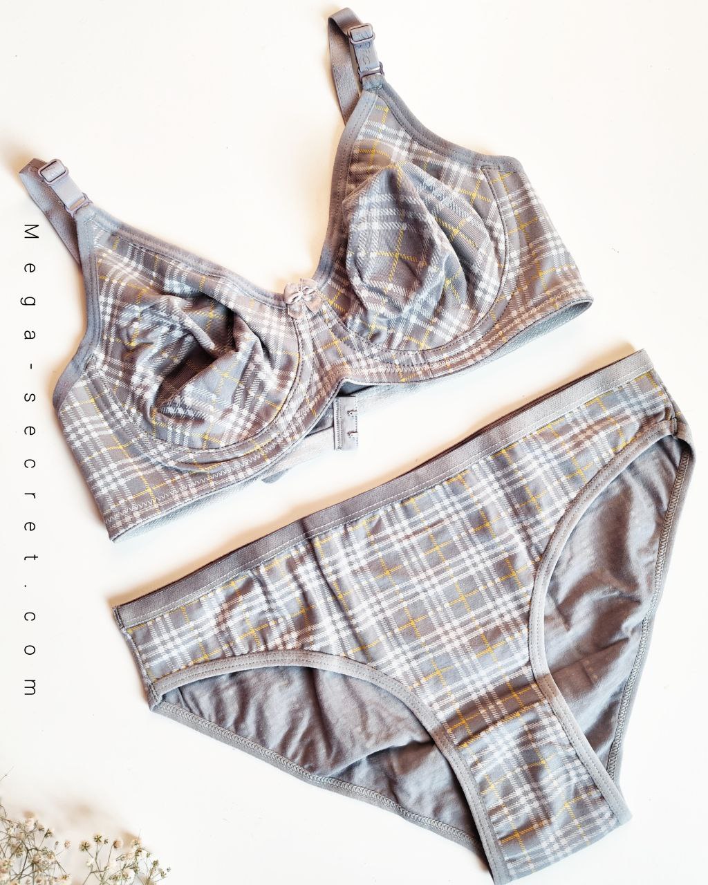 ست شورت و سوتین زنانه برند B&D مدل چهارخونه طوسی