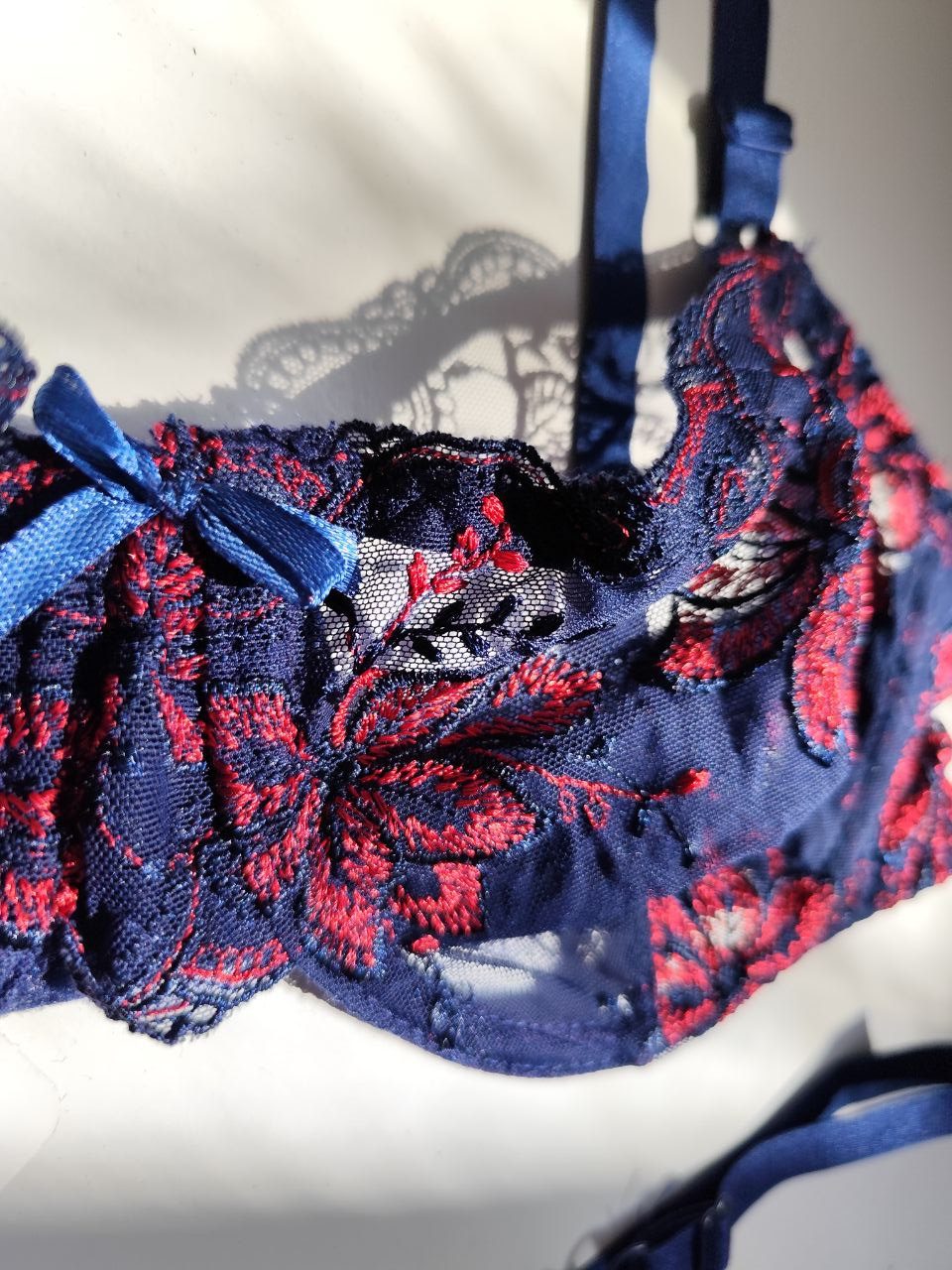 این ست از تورگاز با کیفیت بالا ساخته شده و علاوه بر زیبایی، دوام بالایی دارد. شورت تانگ با دو طرف قزن قابل تنظیم است که امکان تنظیم سایز و راحتی بیشتر را فراهم میکند. ترکیب رنگ آبی با گلهای سرخ، جلوهای جذاب و چشمنواز به لباس زیر میدهد و برای خانمهایی که به جزئیات اهمیت میدهند، انتخاب ایدهآل است.