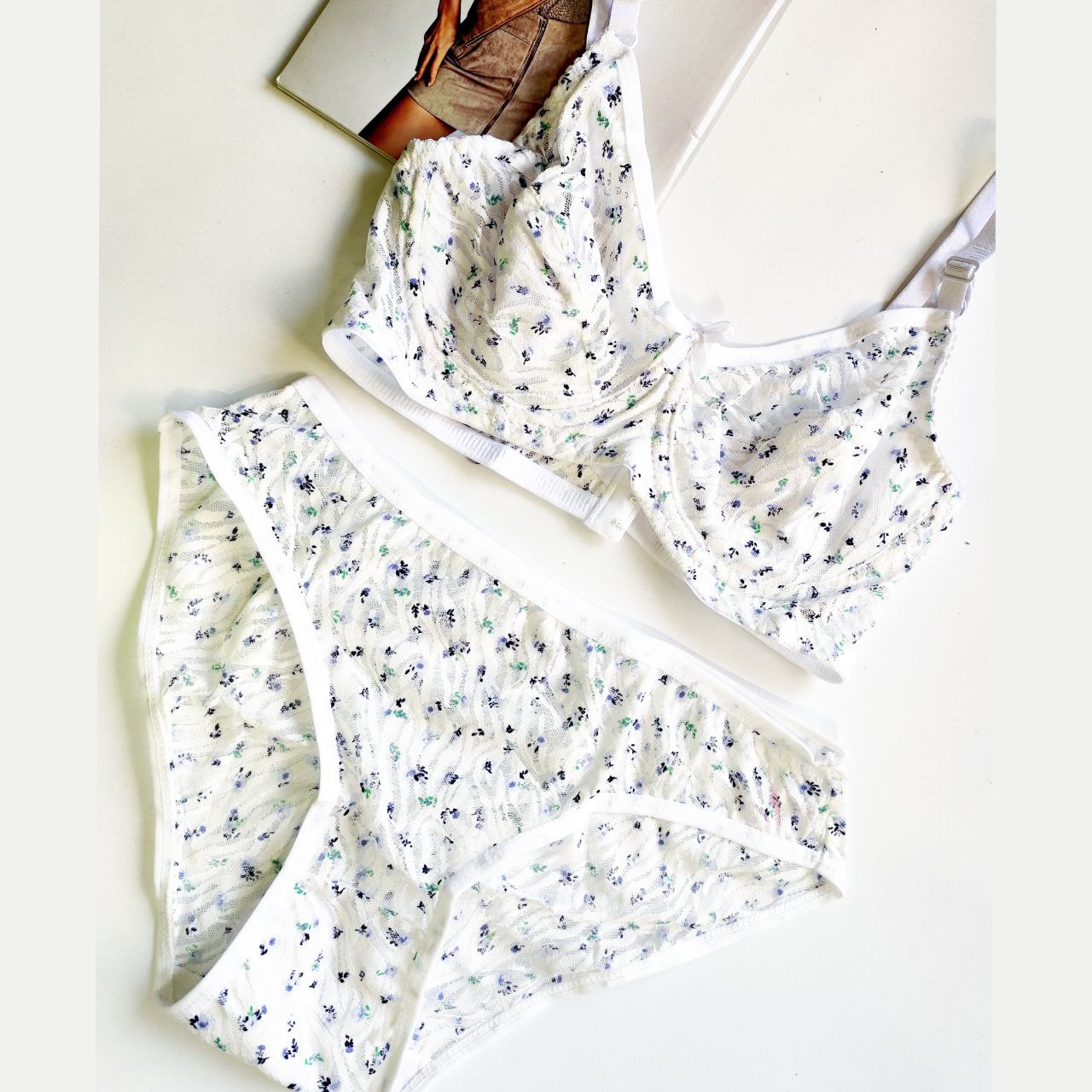 ست شورت و سوتین گیپور ژوبین مدل گلریز سفید با پارچه گیپور وارداتی و باکیفیت طراحی شده است که با طرح گلریز ریز و ظریف روی زمینه سفید، ظاهر بسیار دلنشین و لطیفی ایجاد می‌کند. این طراحی ویژه، مناسب خانم‌هایی است که به استایل ظریف و زنانه اهمیت می‌دهند. رنگ سفید کلاسیک به راحتی با سایر لباس‌های زیر و پوشاک ست می‌شود و حس پاکیزگی و طراوت را منتقل می‌کند. استفاده از تور و گیپور خارجی، این مدل را از نظر زیبایی و دوام متمایز کرده و آن را به انتخابی خاص و شیک تبدیل کرده است.