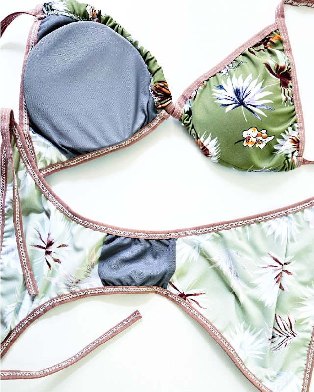 • مایو بیکینی دو تکه زنانه با بند گره‌ای و کاپ اسفنجی متحرک.