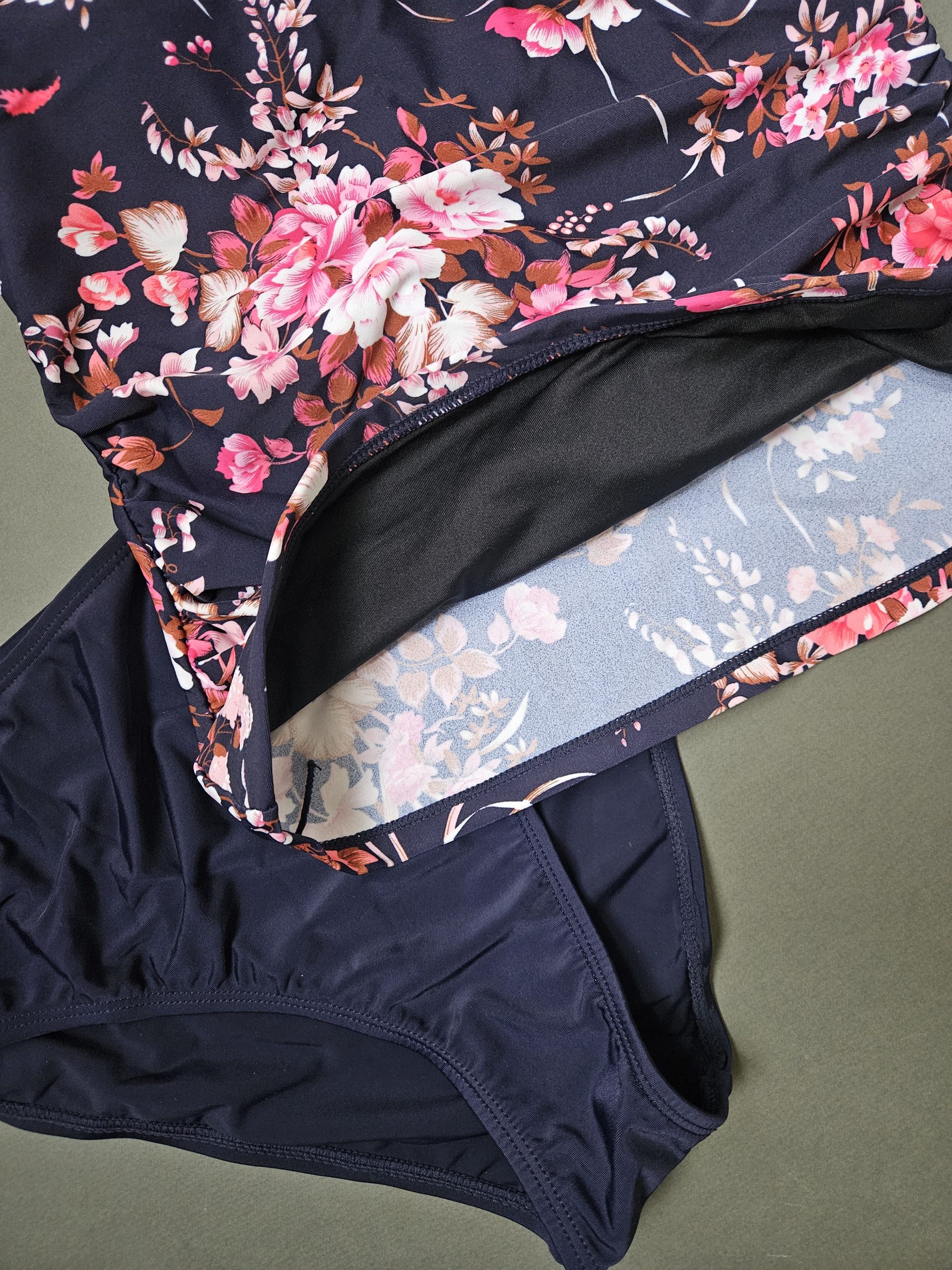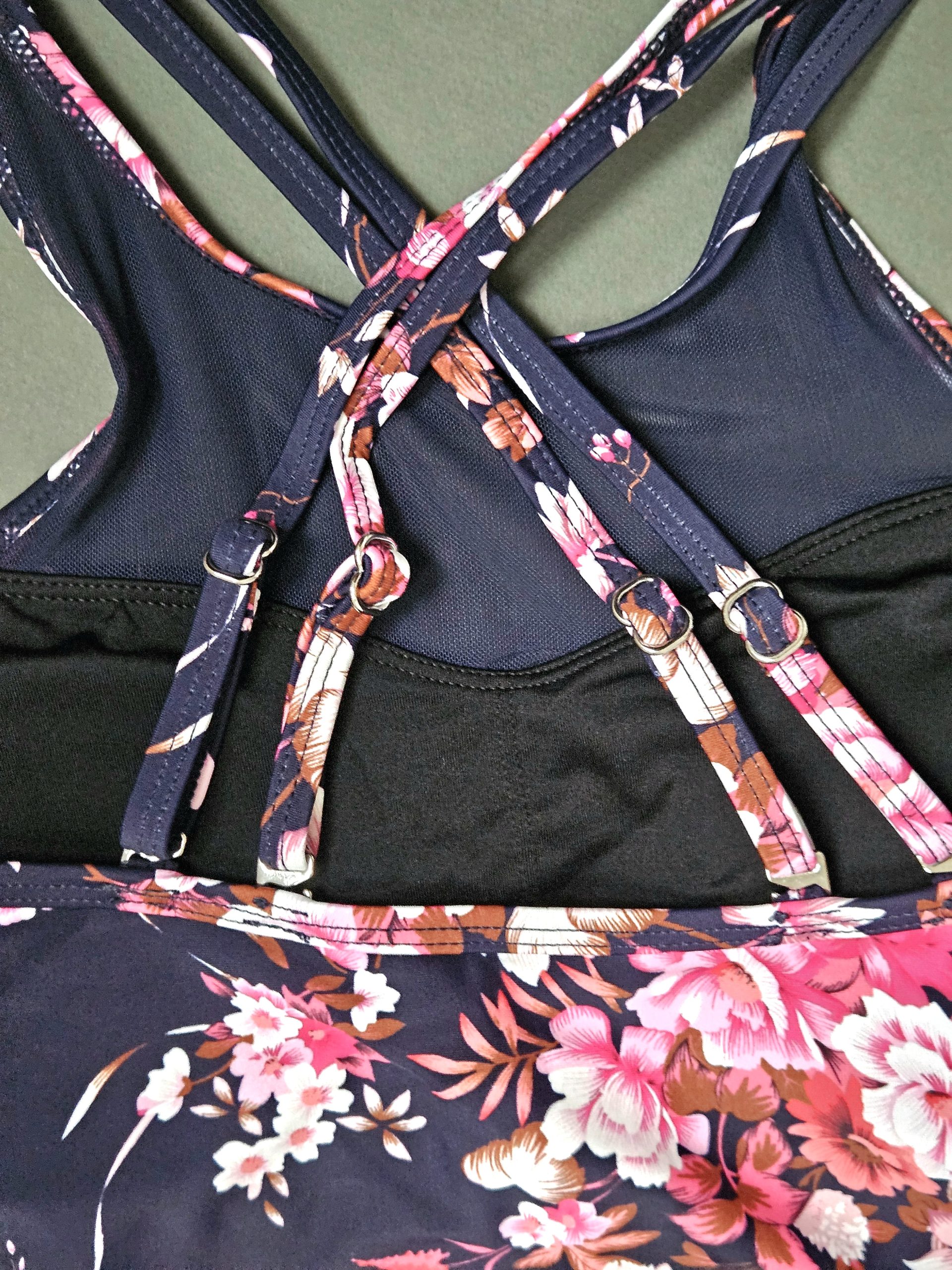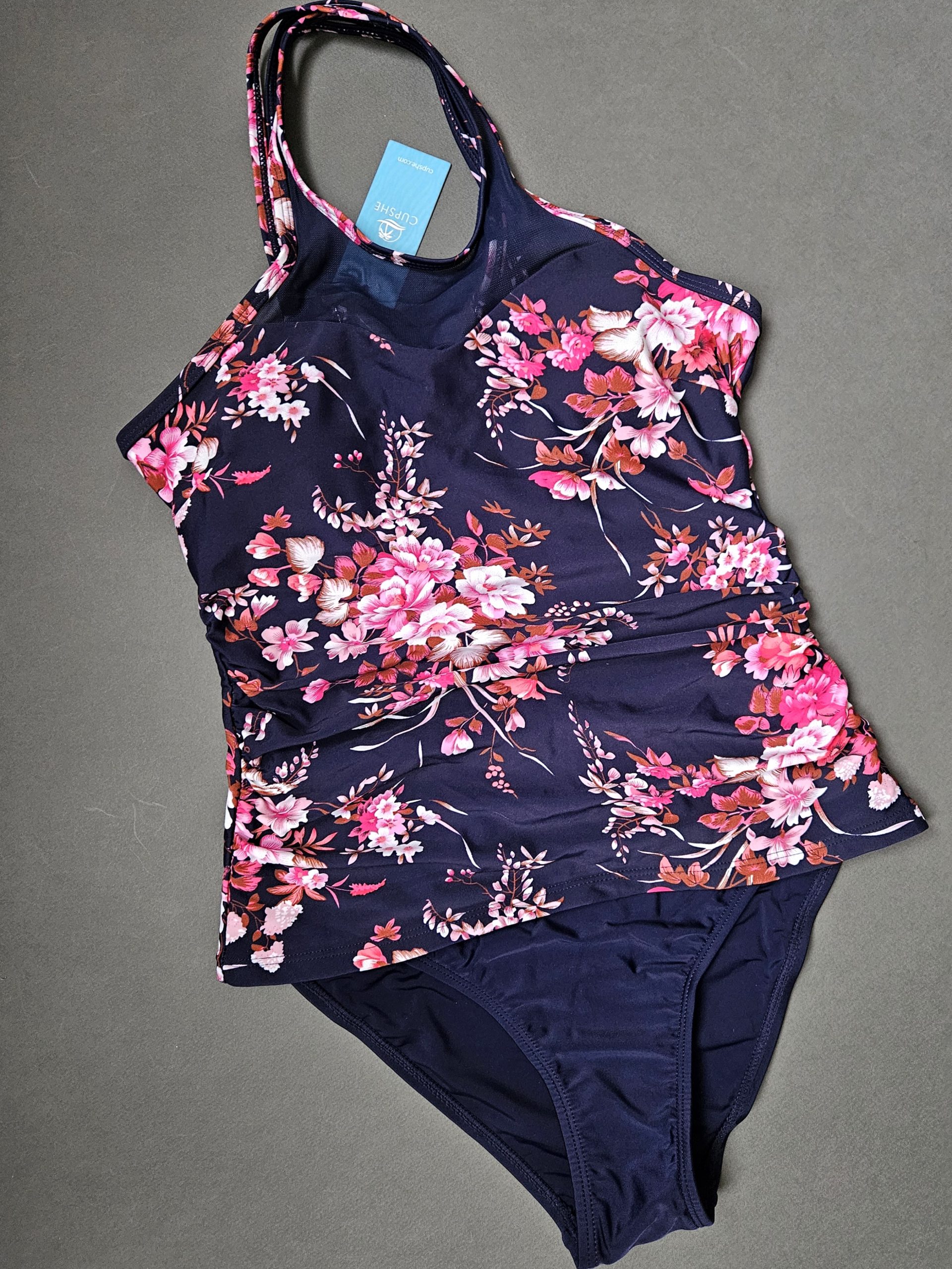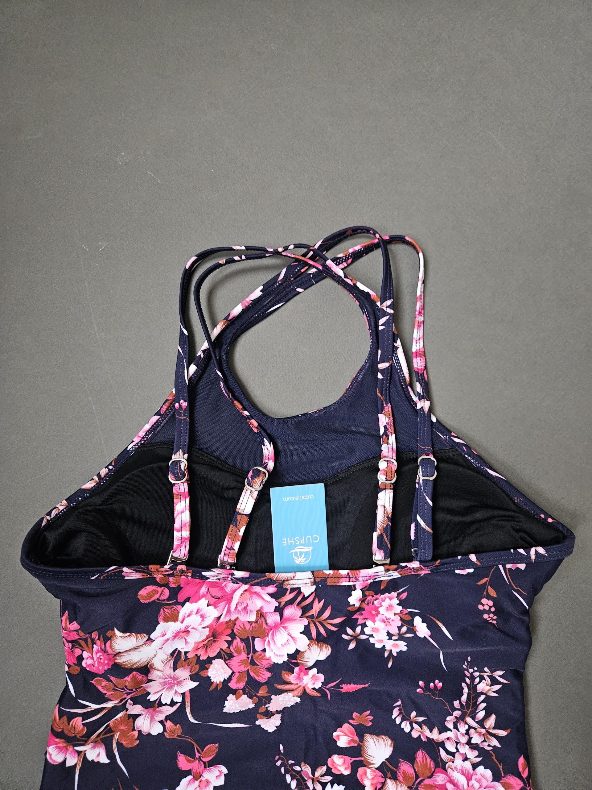 یکی از جذابترین ویژگیهای این مدل، طراحی خاص بندهای پشت تاپ است که بهصورت ضربدری قرار گرفتهاند و هم زیبایی بیشتری ایجاد میکنند، هم باعث ایستایی بهتر روی بدن میشوند. تاپ در دو طرف شانه دارای ریگلاژ است تا بتوانید اندازه بندها را دقیقاً مطابق فرم بدن تنظیم کنید و در طول روز احساس راحتی کامل داشته باشید. شورت اسلیپ با آستر داخلی، فیت استاندارد و طراحی لطیف، پوششی مطمئن و خوشفرم ایجاد میکند. هماهنگی رنگ سرمهای با گلهای صورتی، در کنار فرم تاپ مانند و ظاهر شبهمونوکینی، این ست را به یکی از خاصترین مدلهای CUPSHE تبدیل کرده است؛ ستّی که هم برای سفرهای ساحلی ایدهآل است و هم برای استایلهای عکاسی و تیپهای تابستانی.